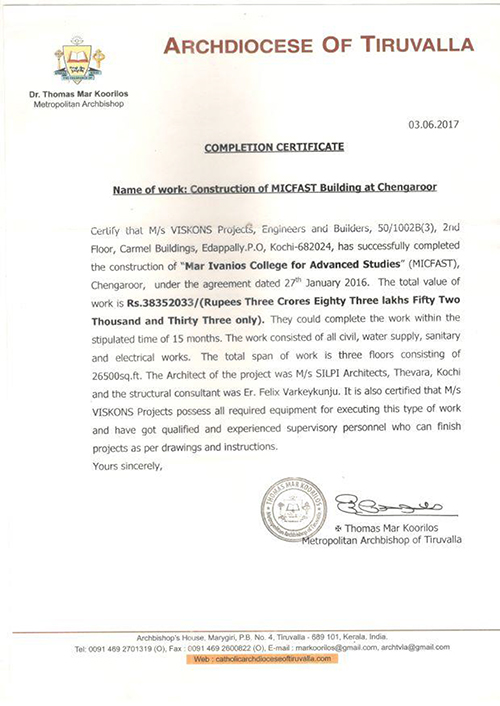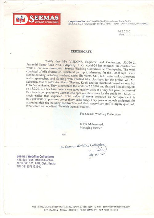 Viskons Projects, having thirty years experience in the construction industry possess a persistent position among the best building contractors. We have a permanent engineering organization capable of completing any type of buildings in a time bound manner with utmost quality to the best satisfaction of our esteemed clients.